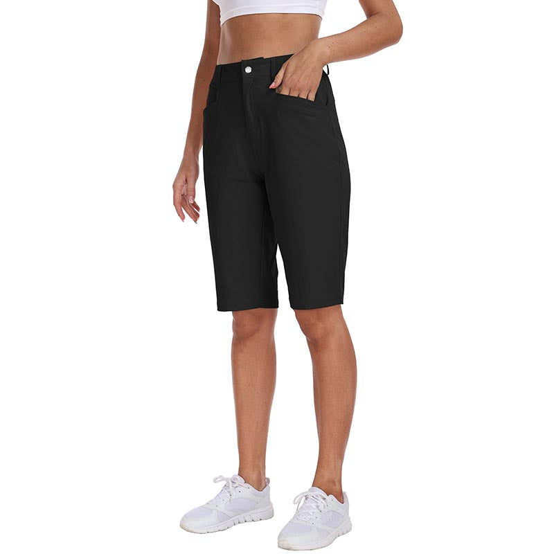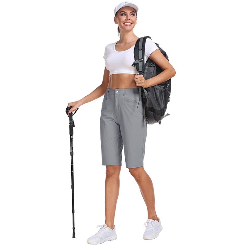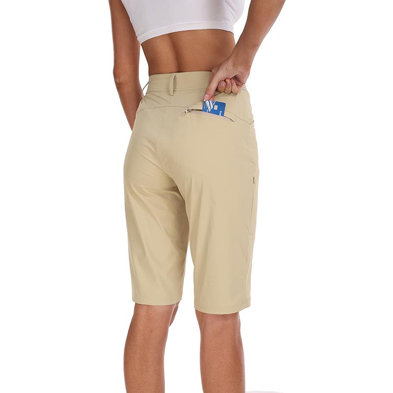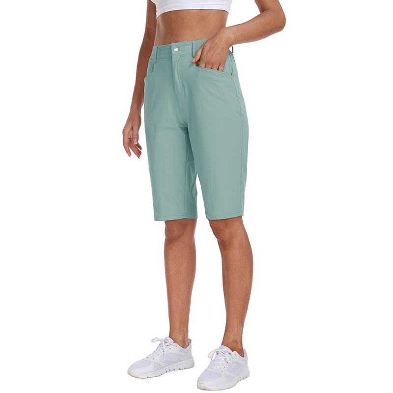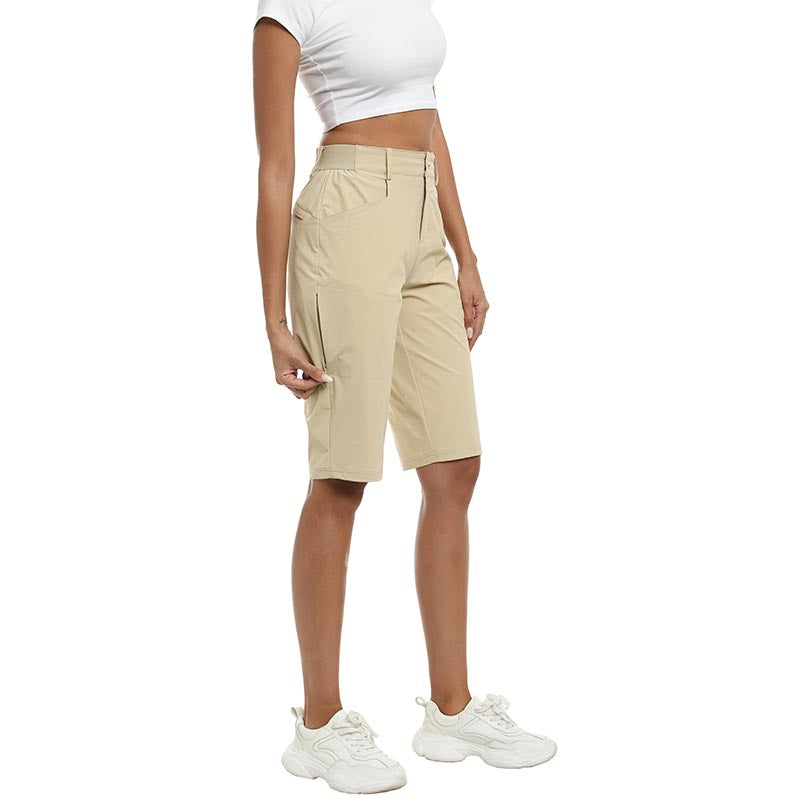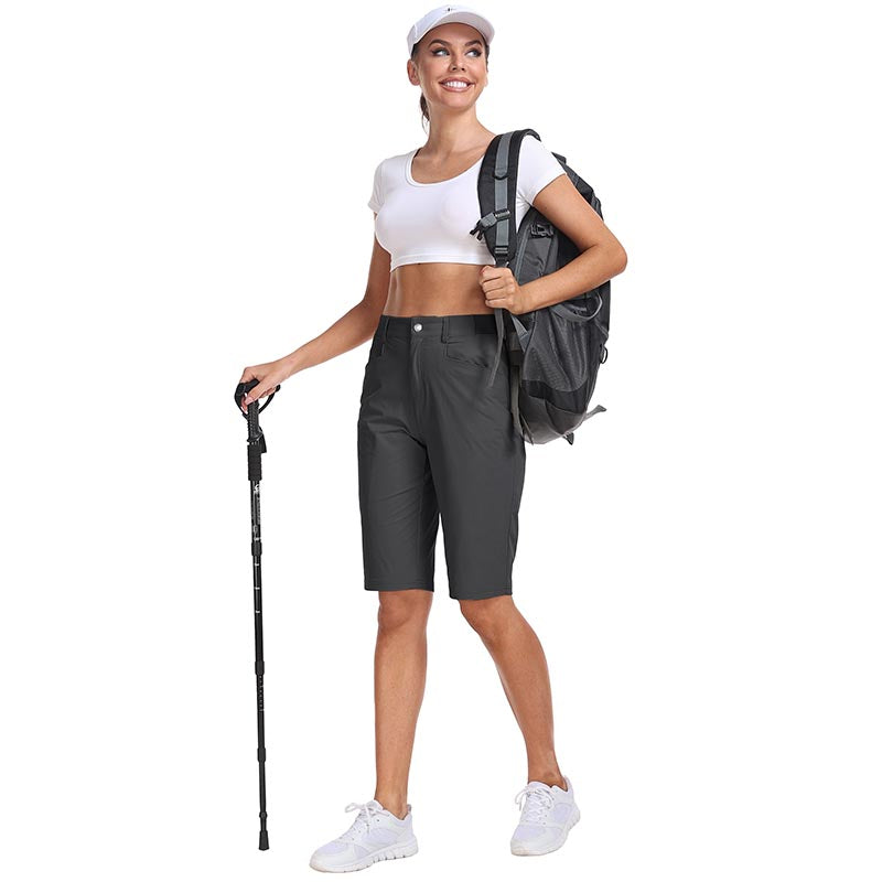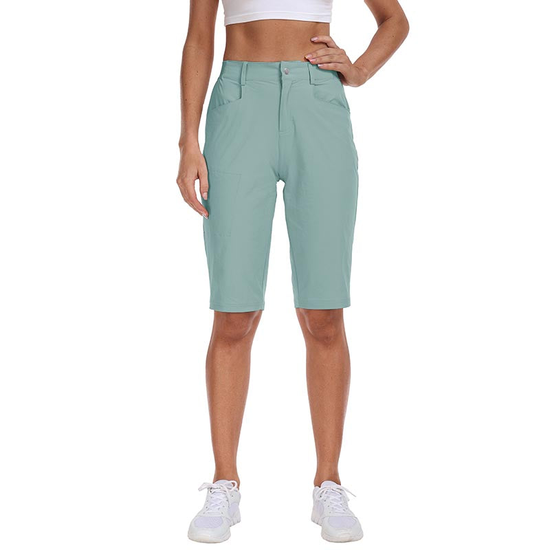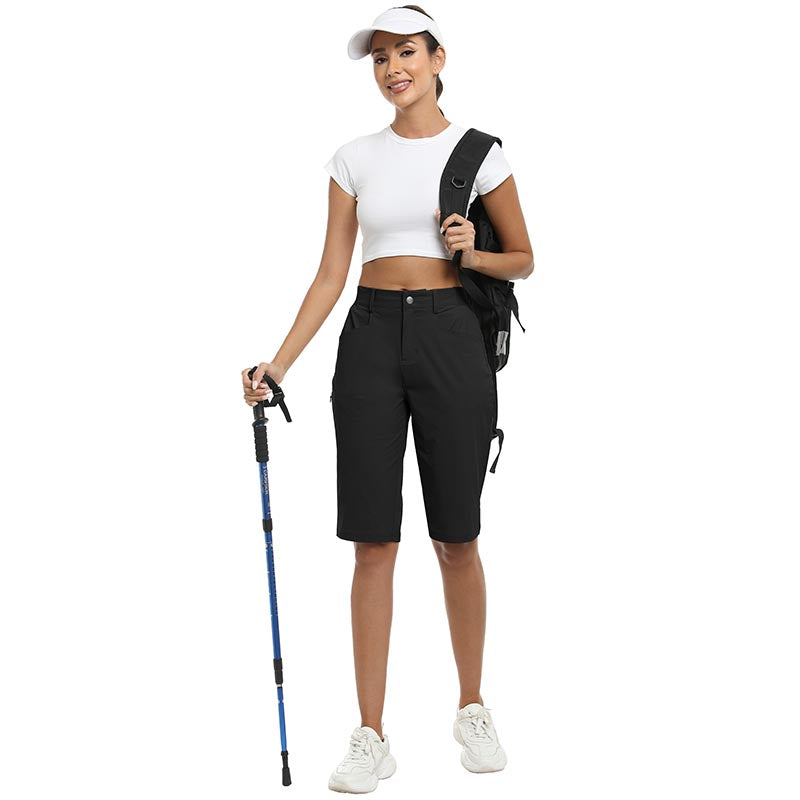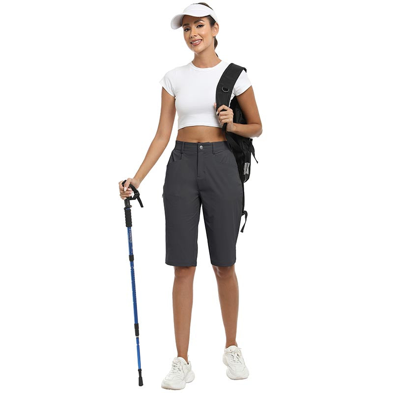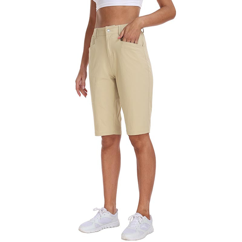 Knee Length Shorts Women made of 85%nylon, 15%spandex, Quick-drying fabric, slightly stretchy, water-resistant, and lightweight, keeping you cool all day in hot summer, great for athletic wear.