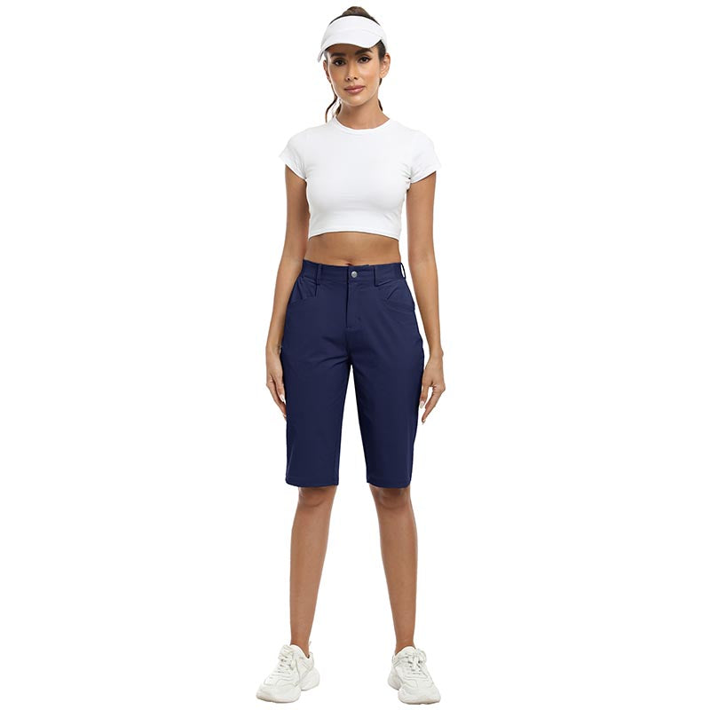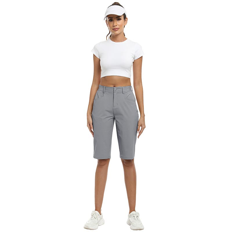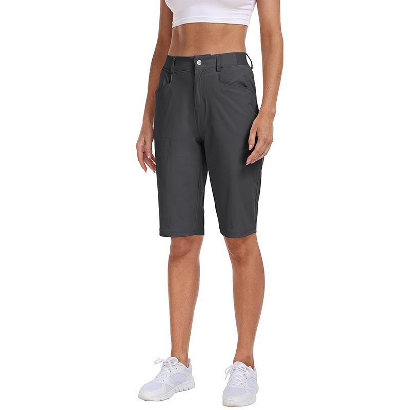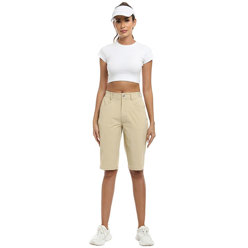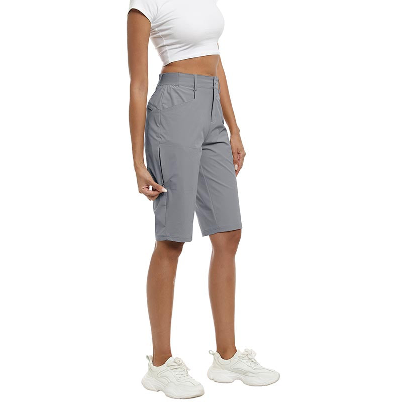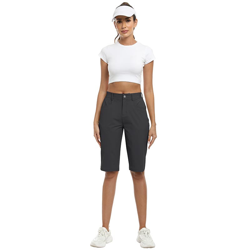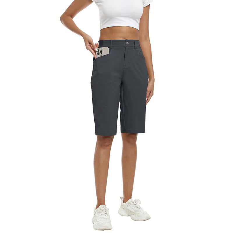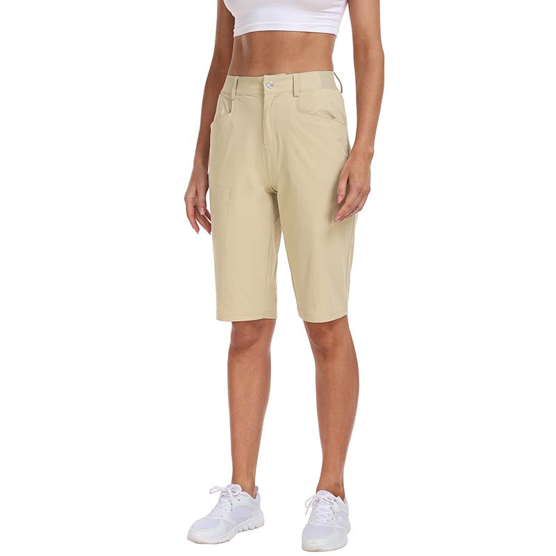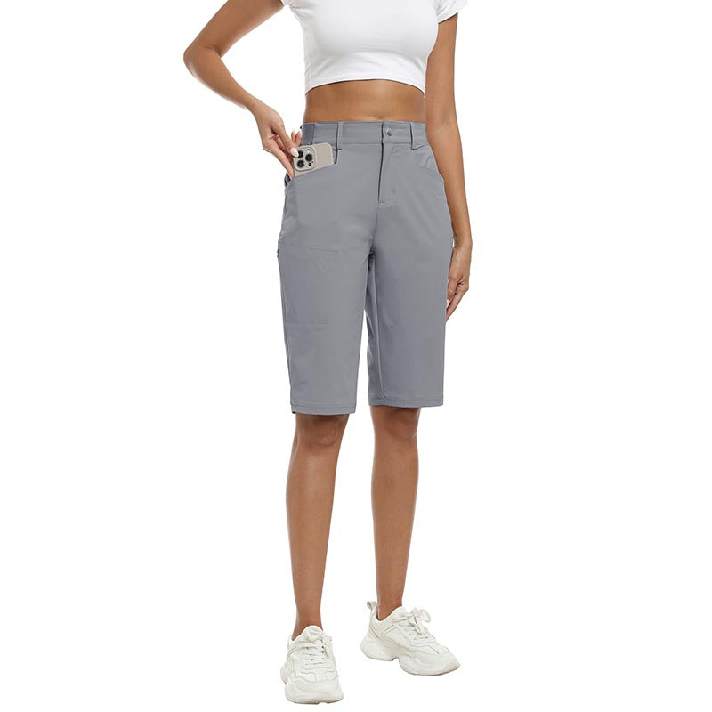 Knee Length Shorts Women made of 85%nylon, 15%spandex, Quick-drying fabric, slightly stretchy, water-resistant, and lightweight, keeping you cool all day in hot summer, great for athletic wear.
