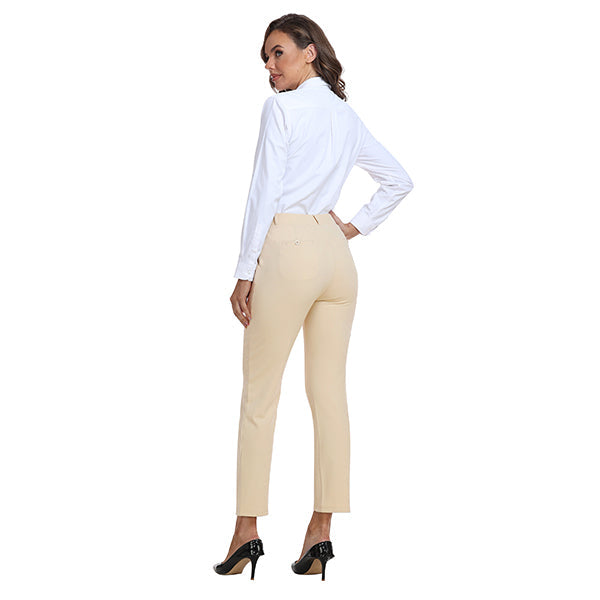 These golf pants for women are made of 4-way stretch fabric, which is soft, breathable, and skin-friendly.