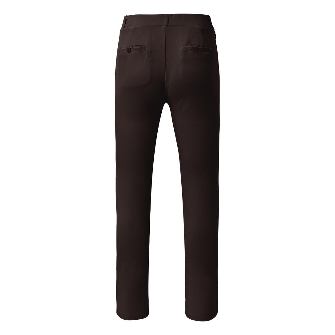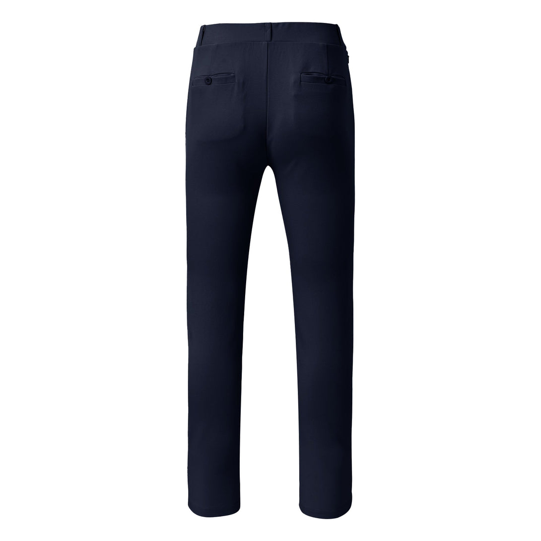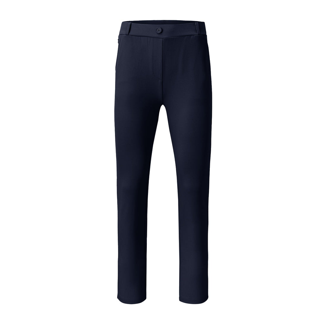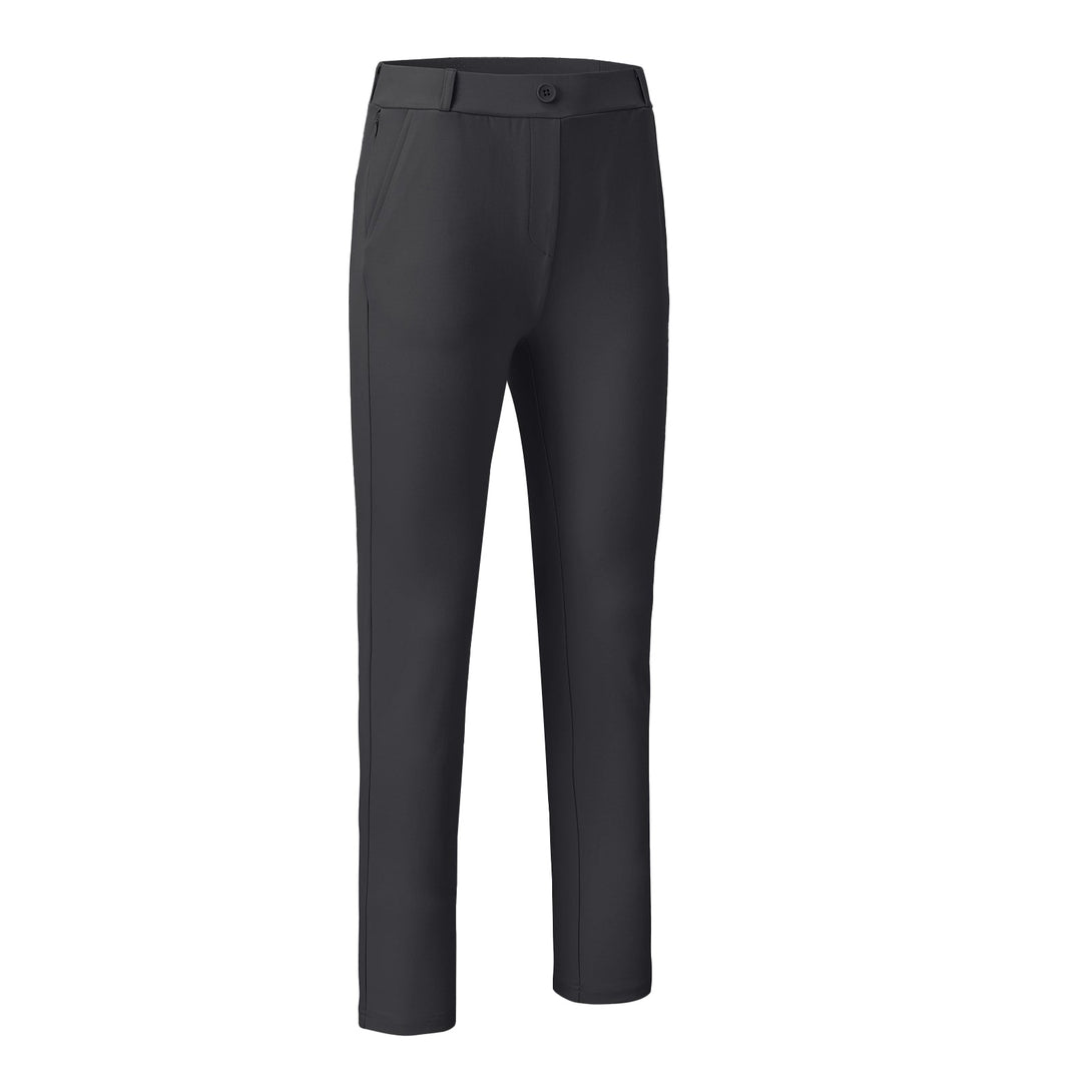 These ladies golf pants have 2 side pockets to hold your hand or phone. 2 back pockets with a button to carry golf glove or scorecards, and a zipper pocket to hold your key or card, Great for daily wear and casual wear.