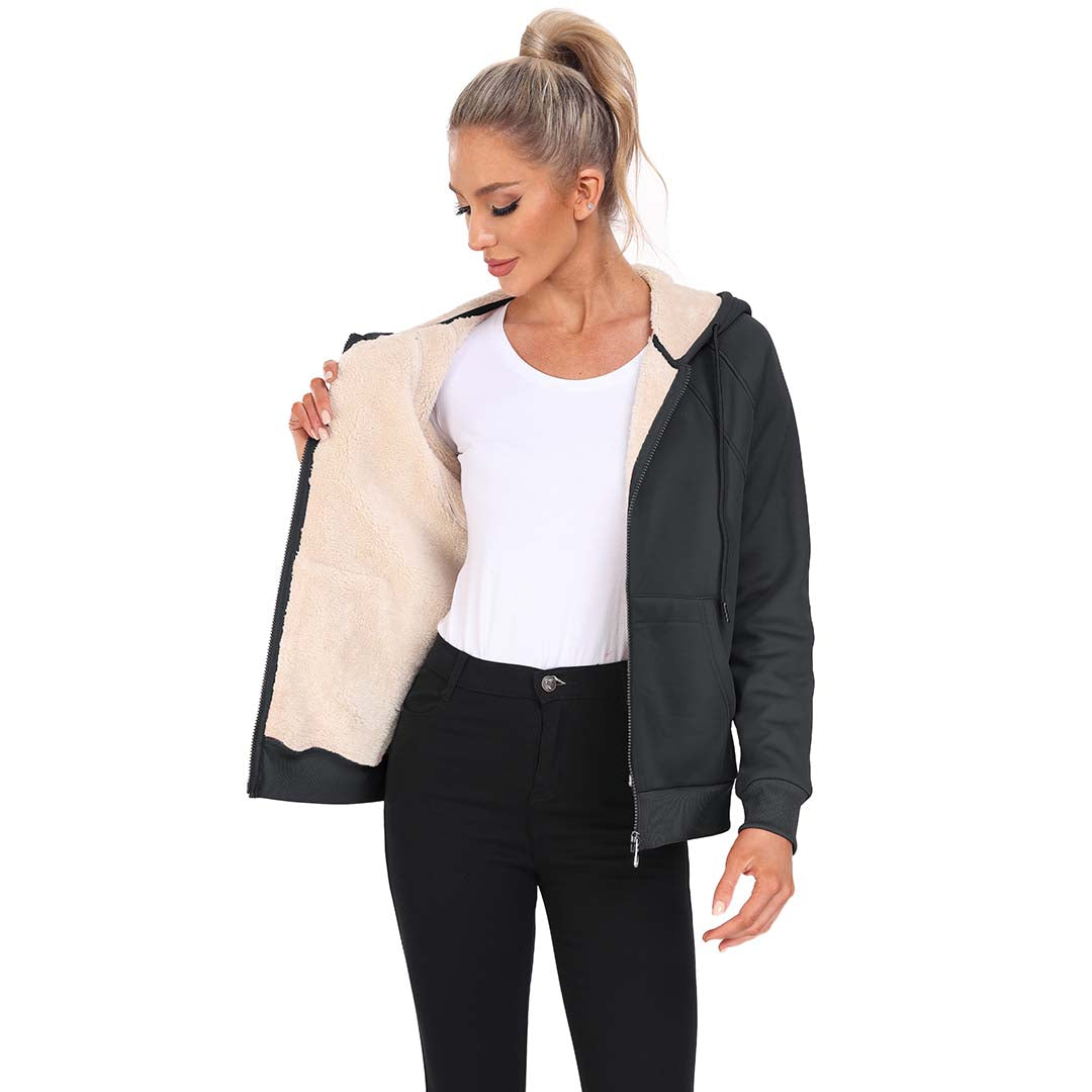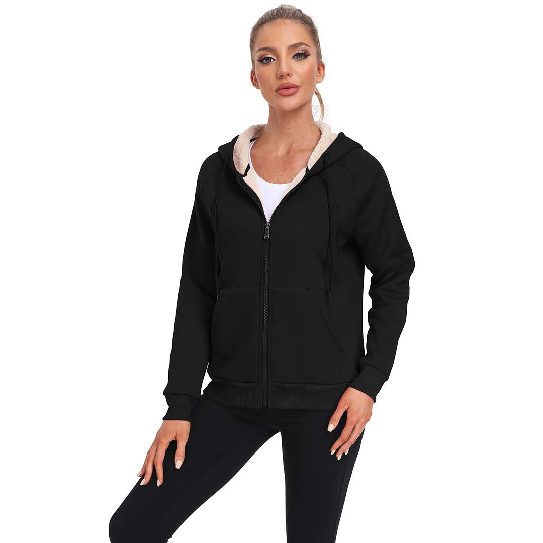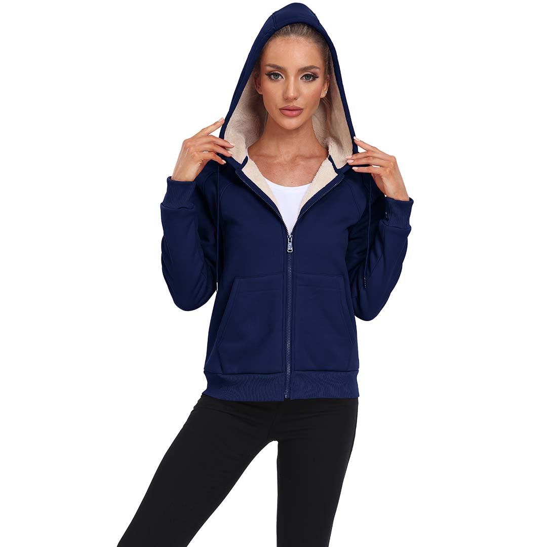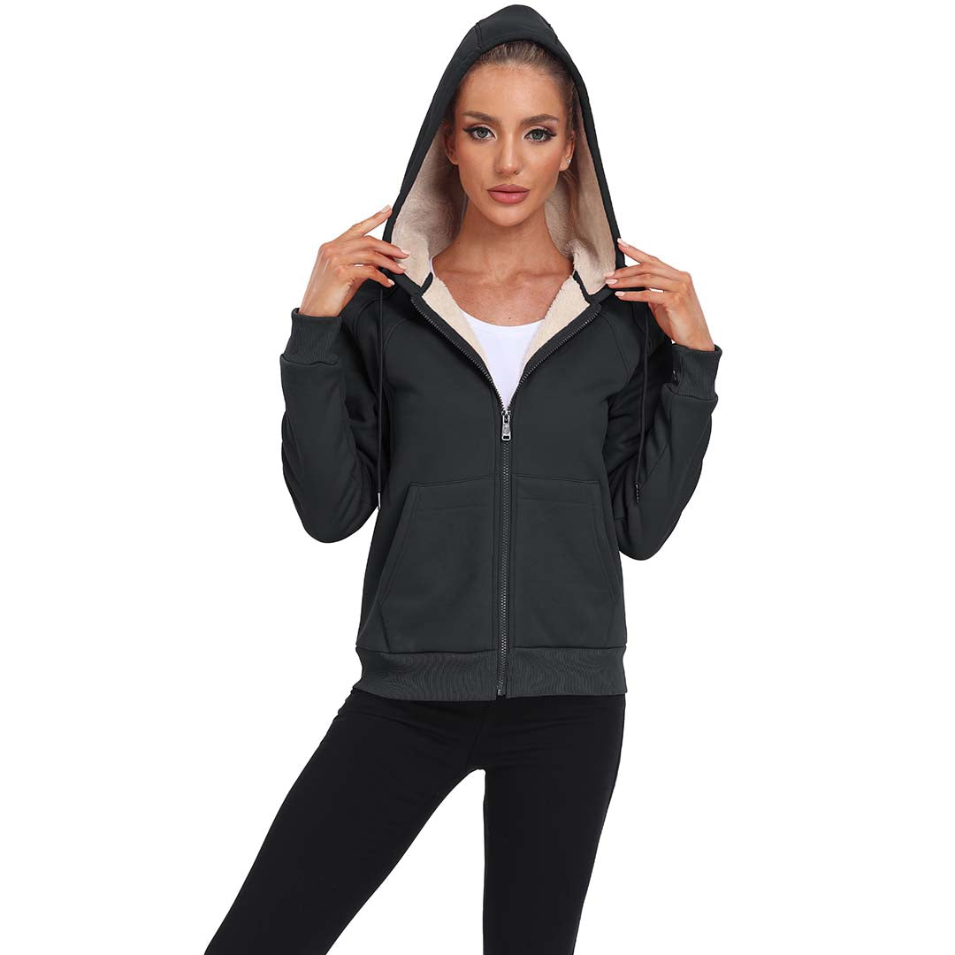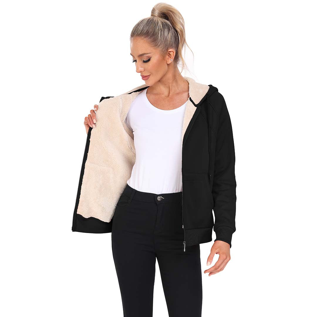 Womens Fleece Hoodie Jackets Made from 100%Polyester, Sherpa Lined, soft and cozy so that you can be warm in cold weather, perfect for autumn, winter season.
