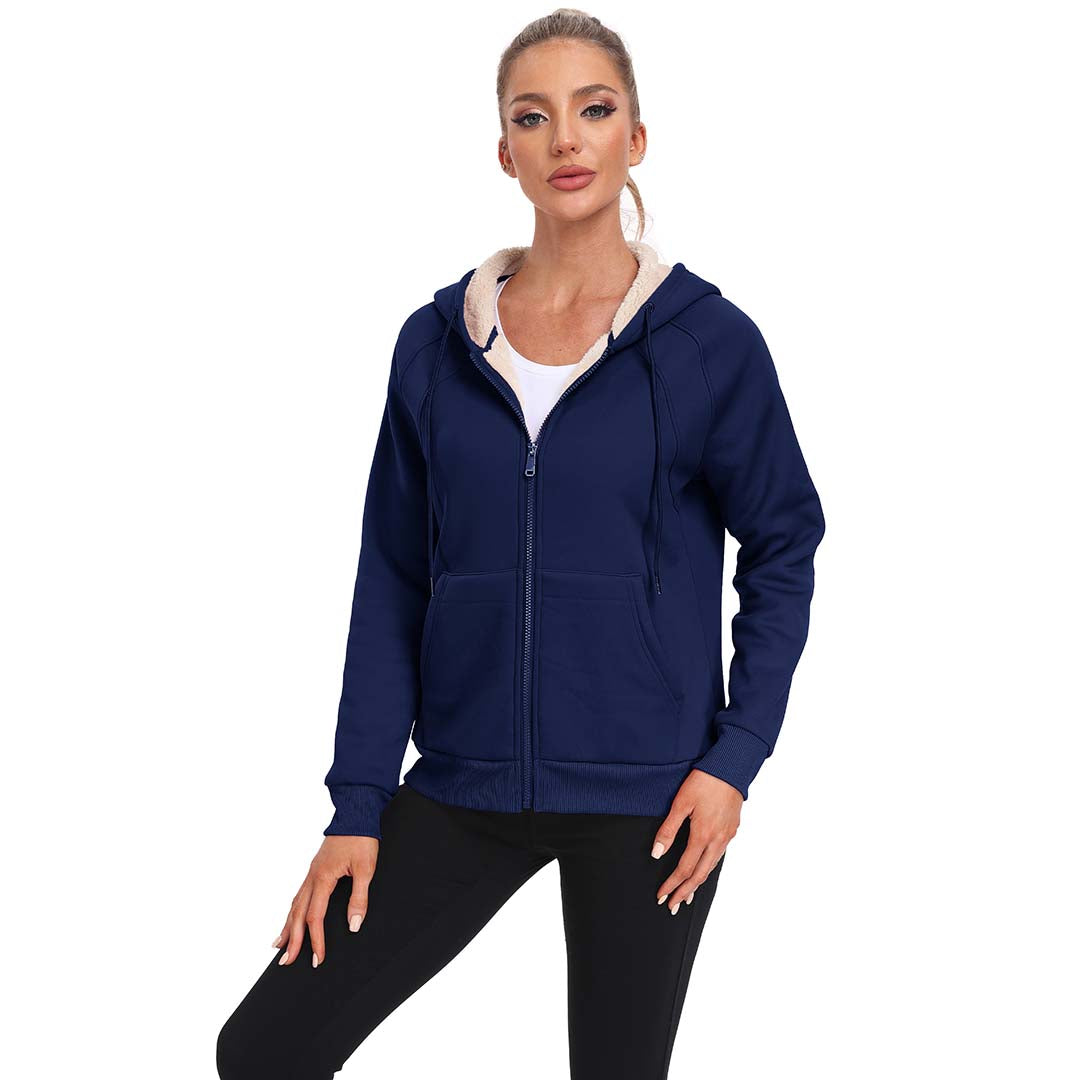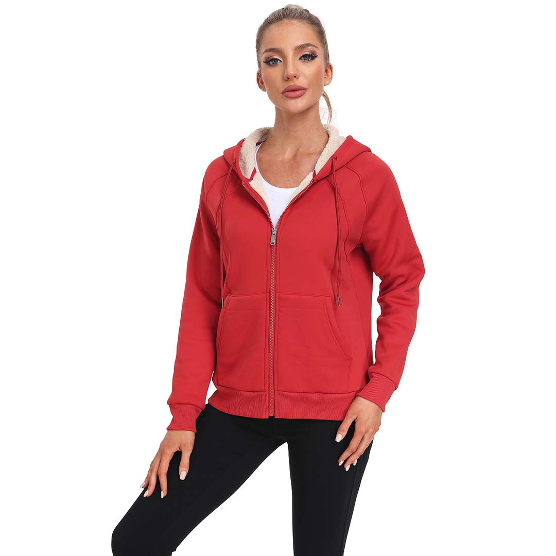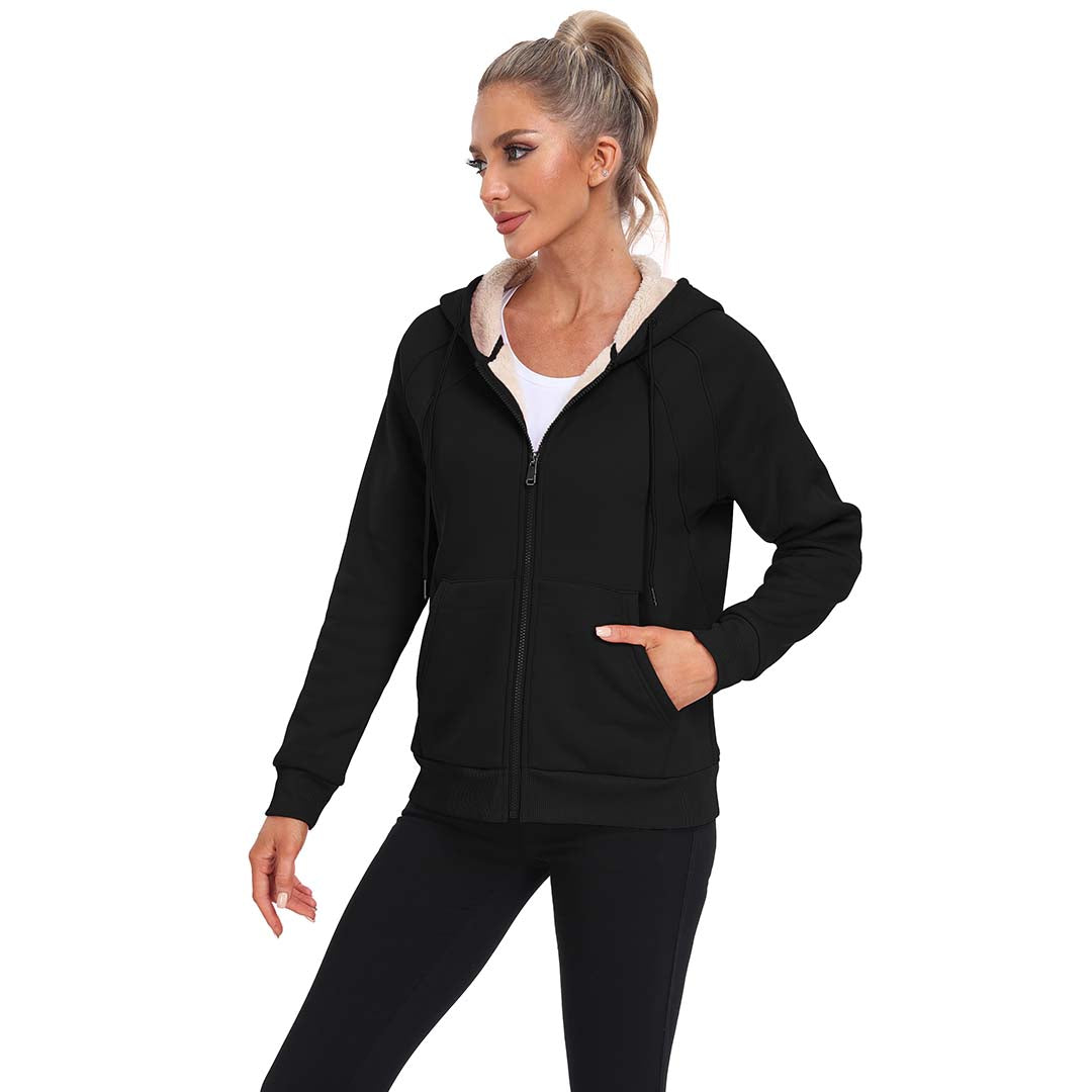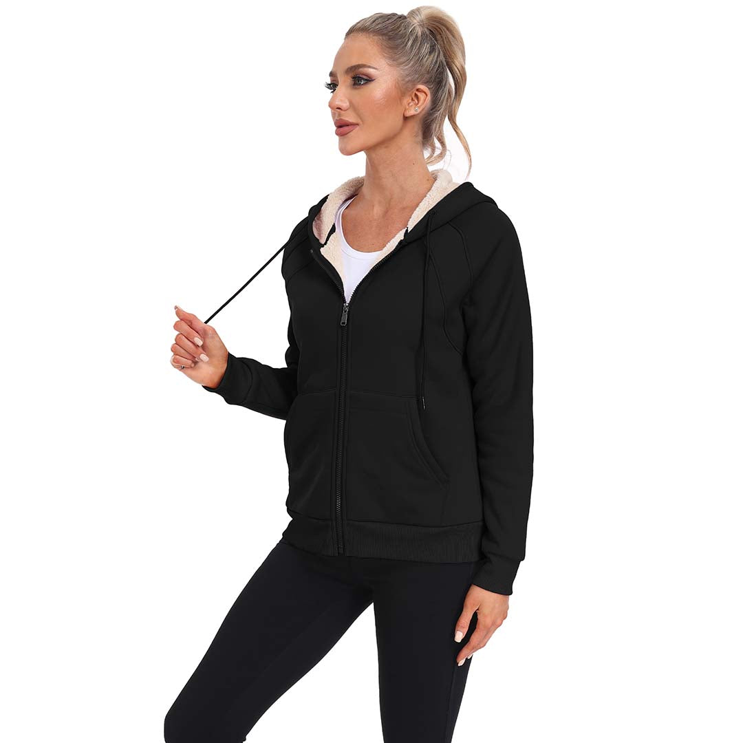 Womens Fleece Hoodie Jackets Made from 100%Polyester, Sherpa Lined, soft and cozy so that you can be warm in cold weather, perfect for autumn, winter season.