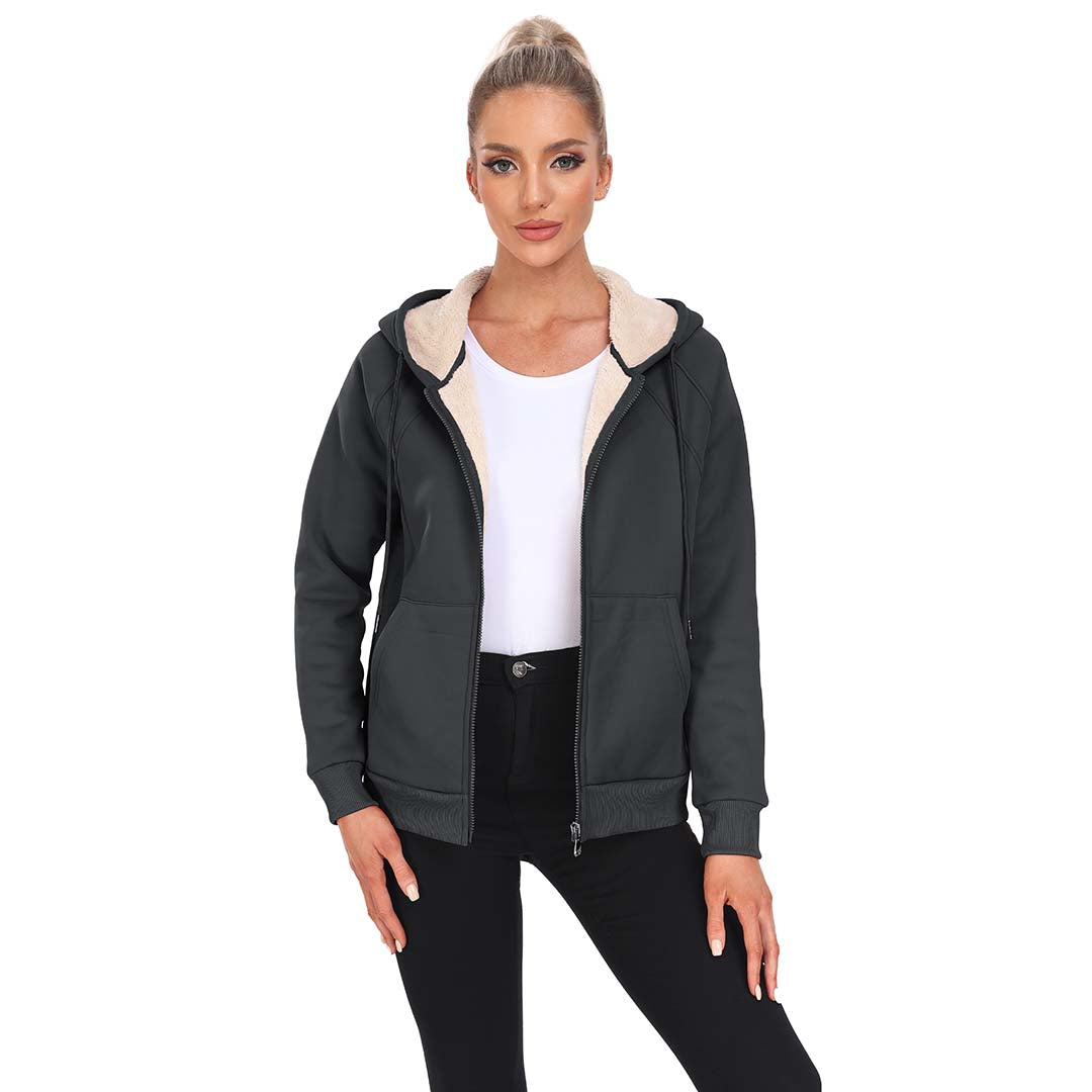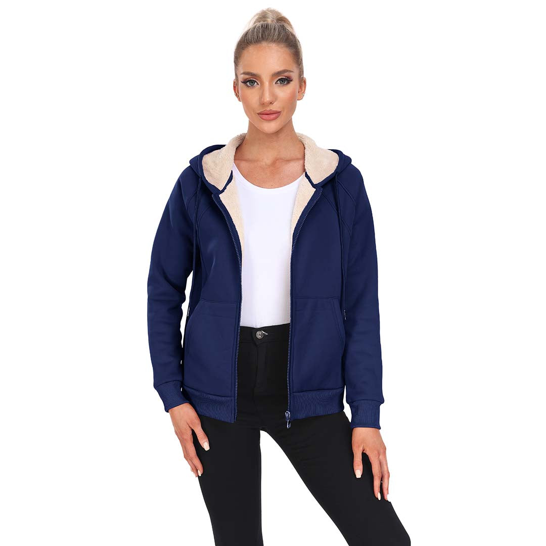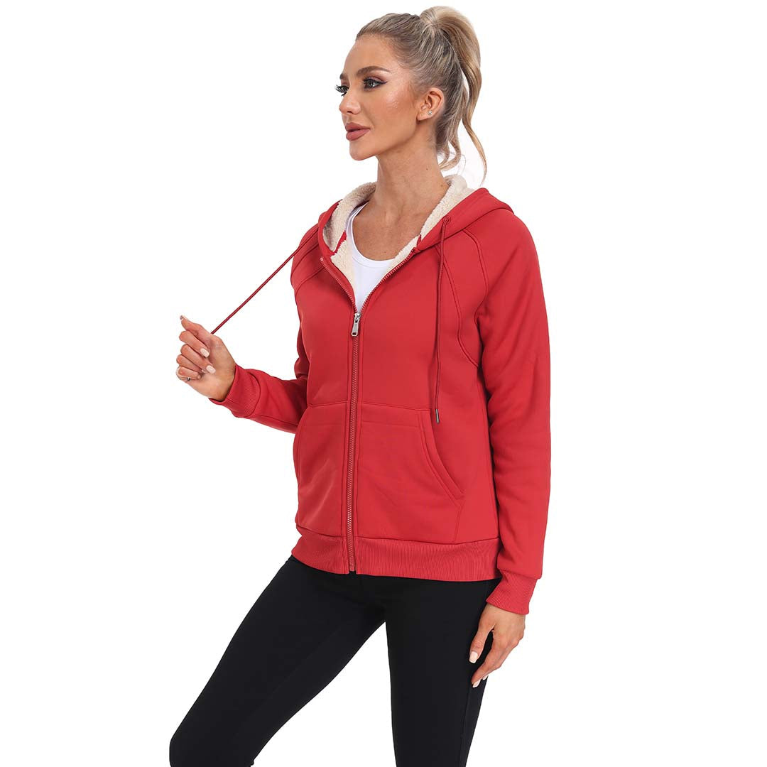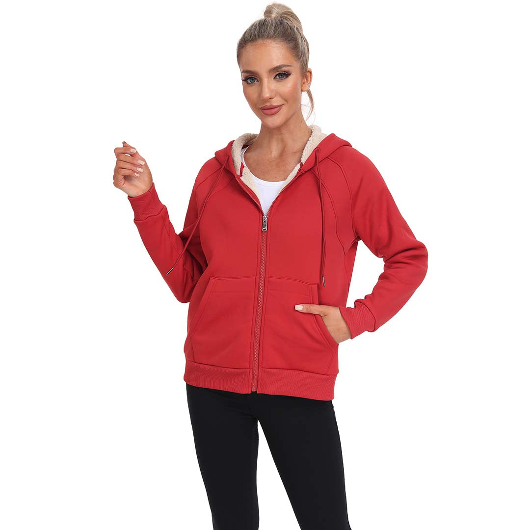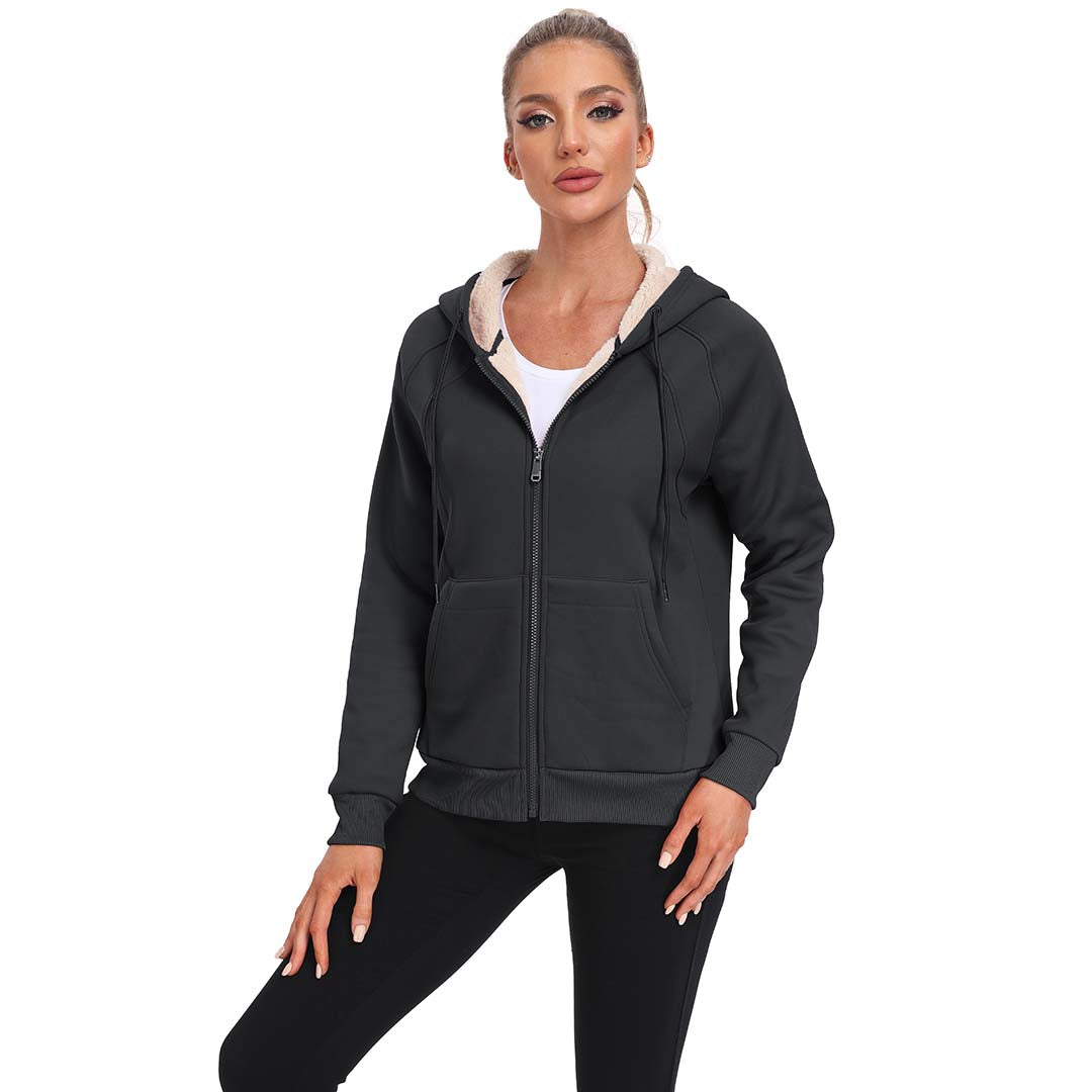 Womens Fleece Hoodie Jackets Made from 100%Polyester, Sherpa Lined, soft and cozy so that you can be warm in cold weather, perfect for autumn, winter season.