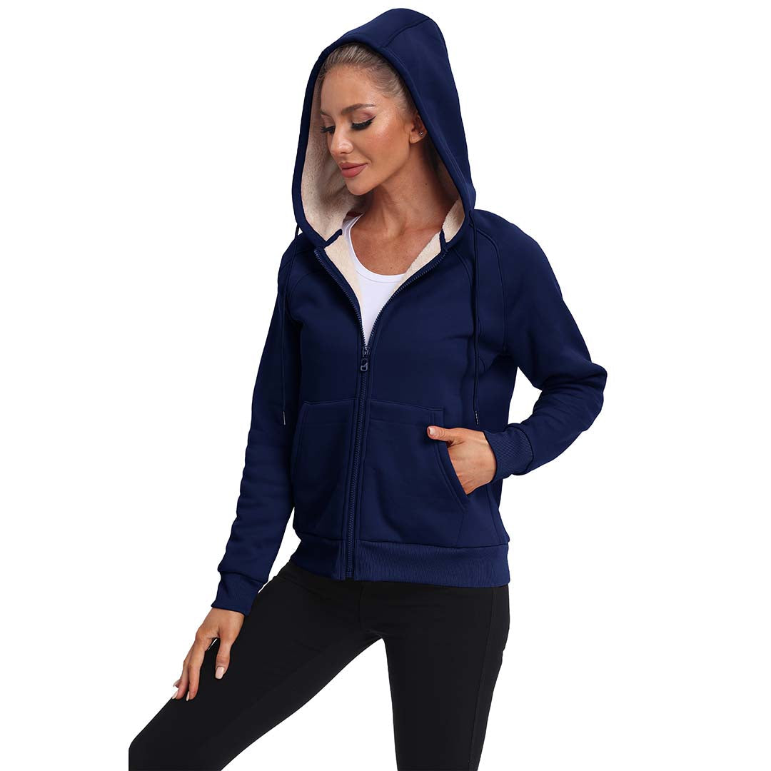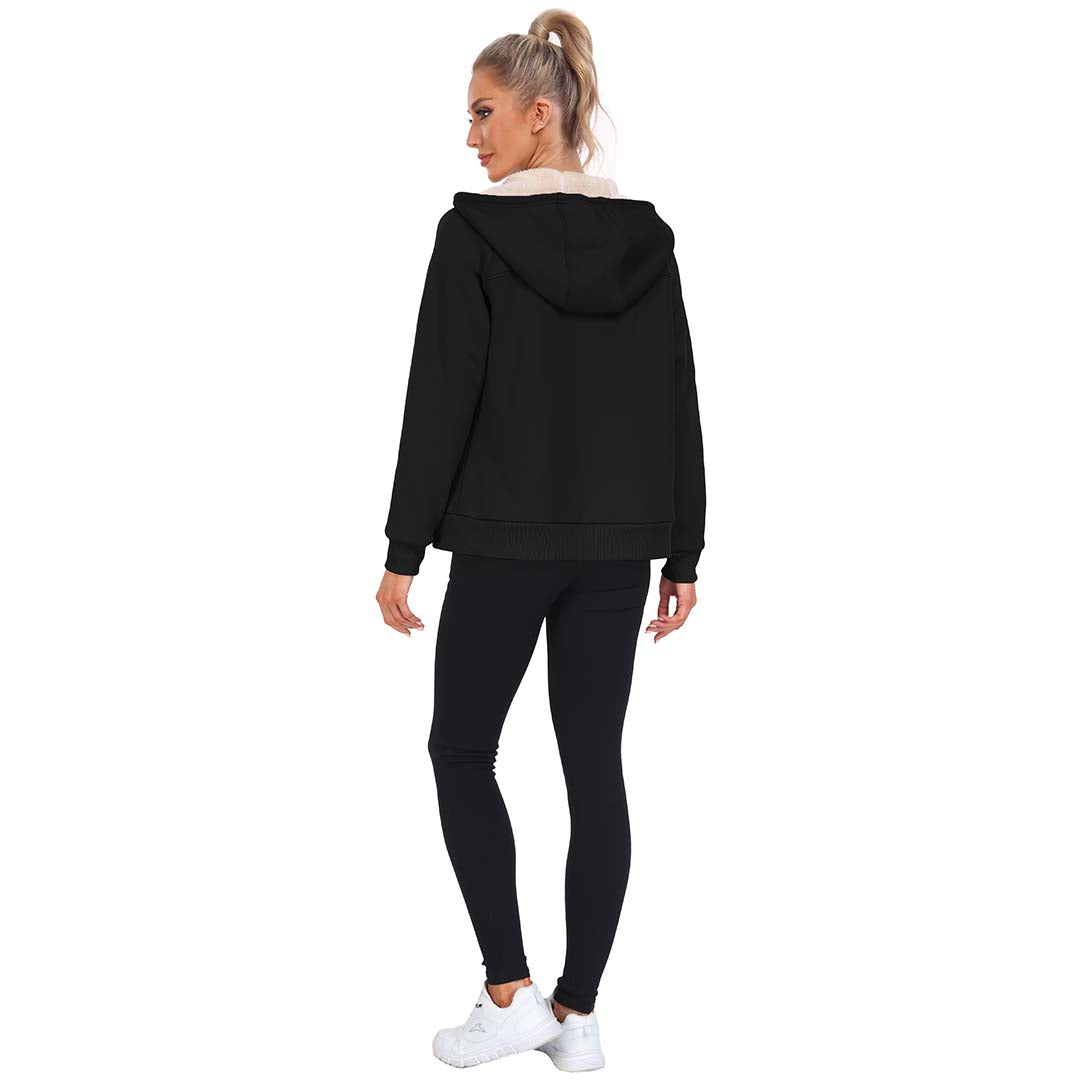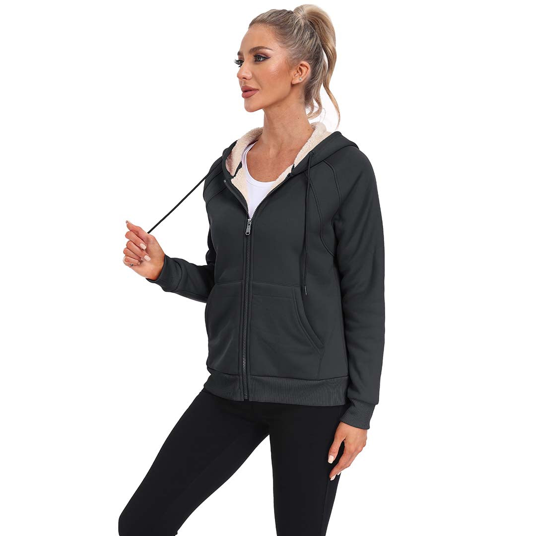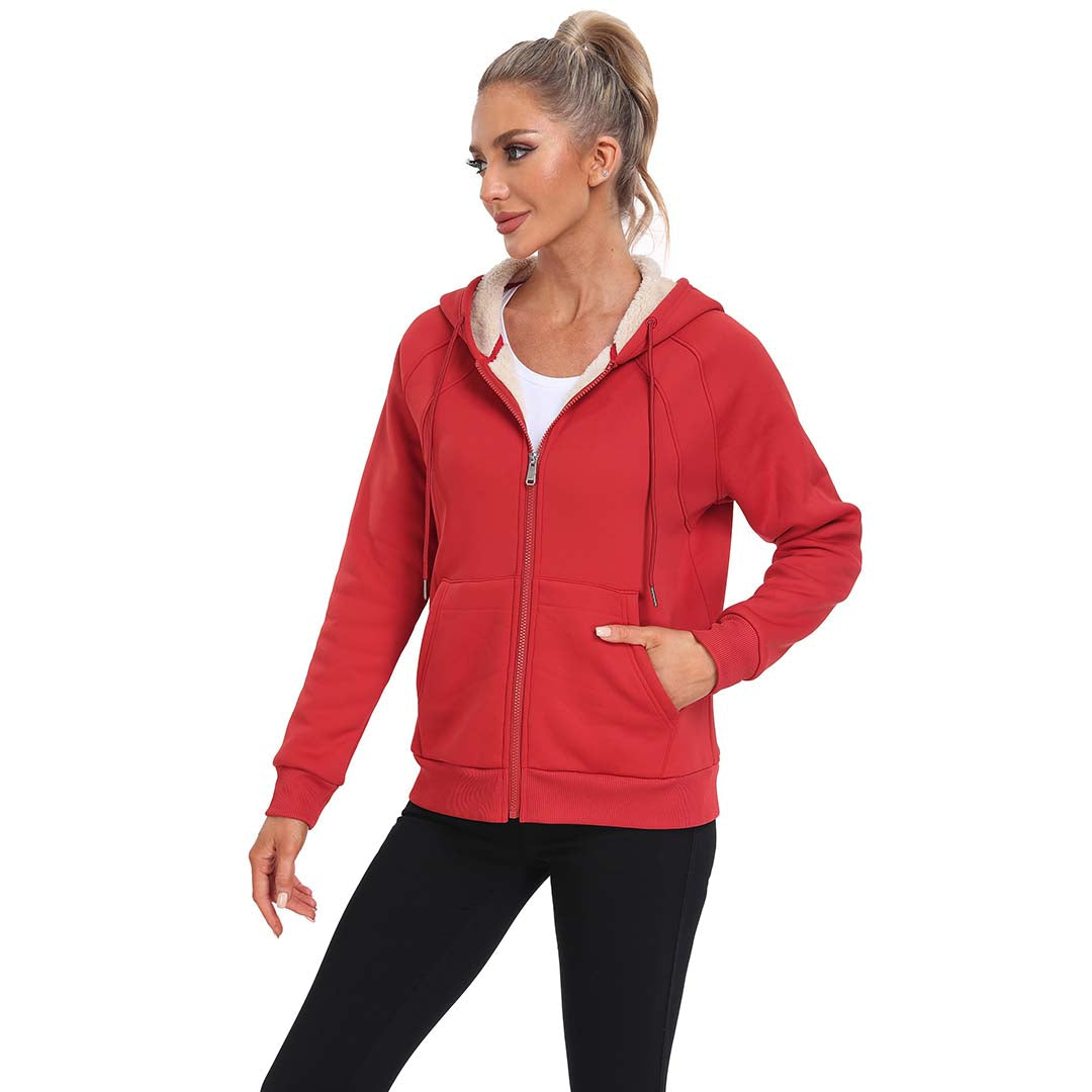 Womens Fleece Hoodie Jackets Made from 100%Polyester, Sherpa Lined, soft and cozy so that you can be warm in cold weather, perfect for autumn, winter season.