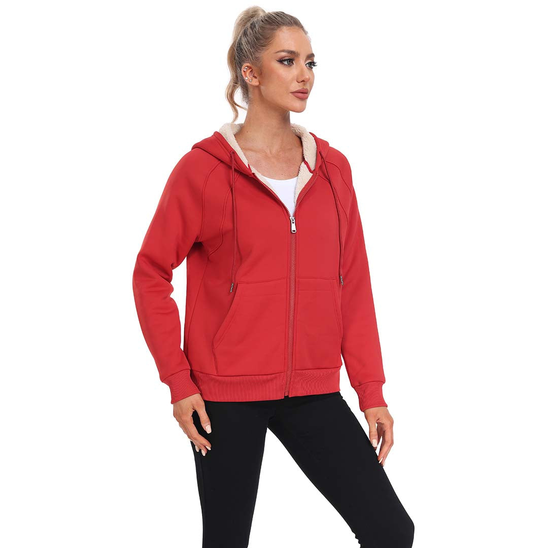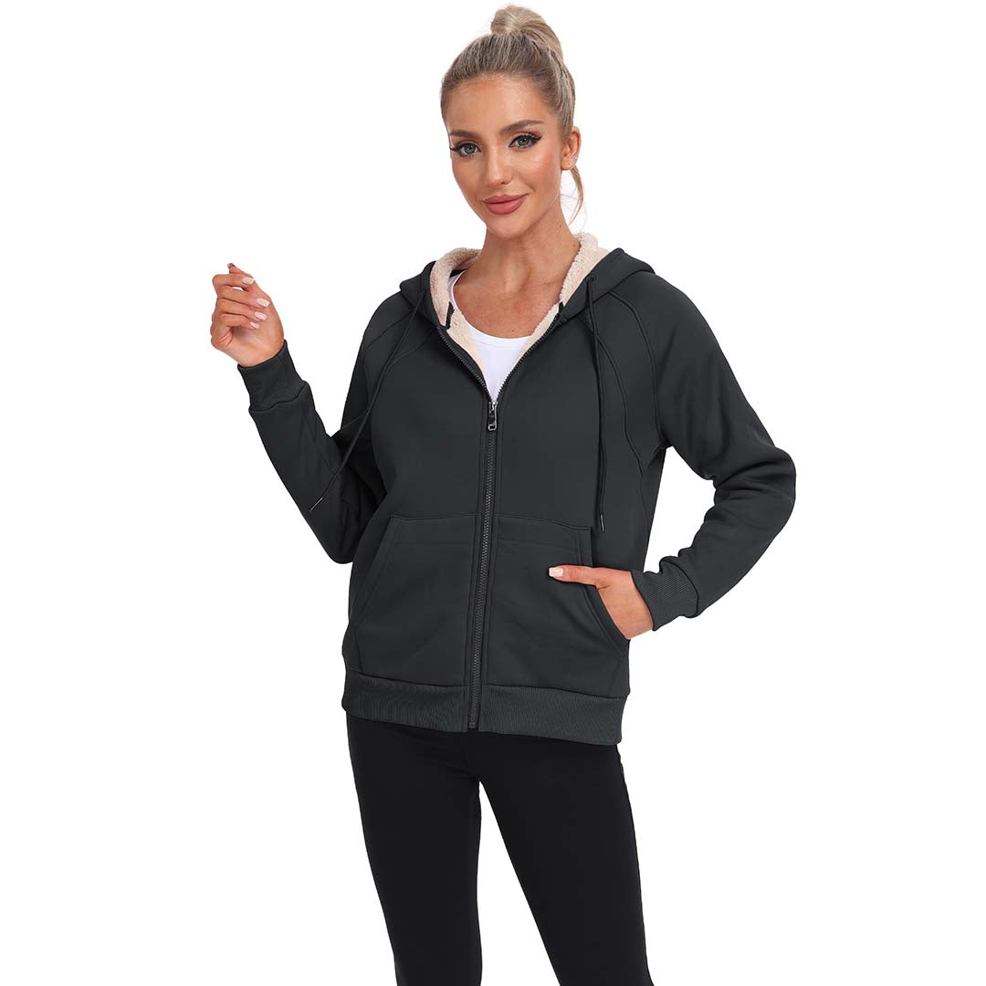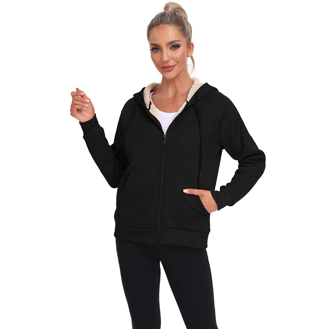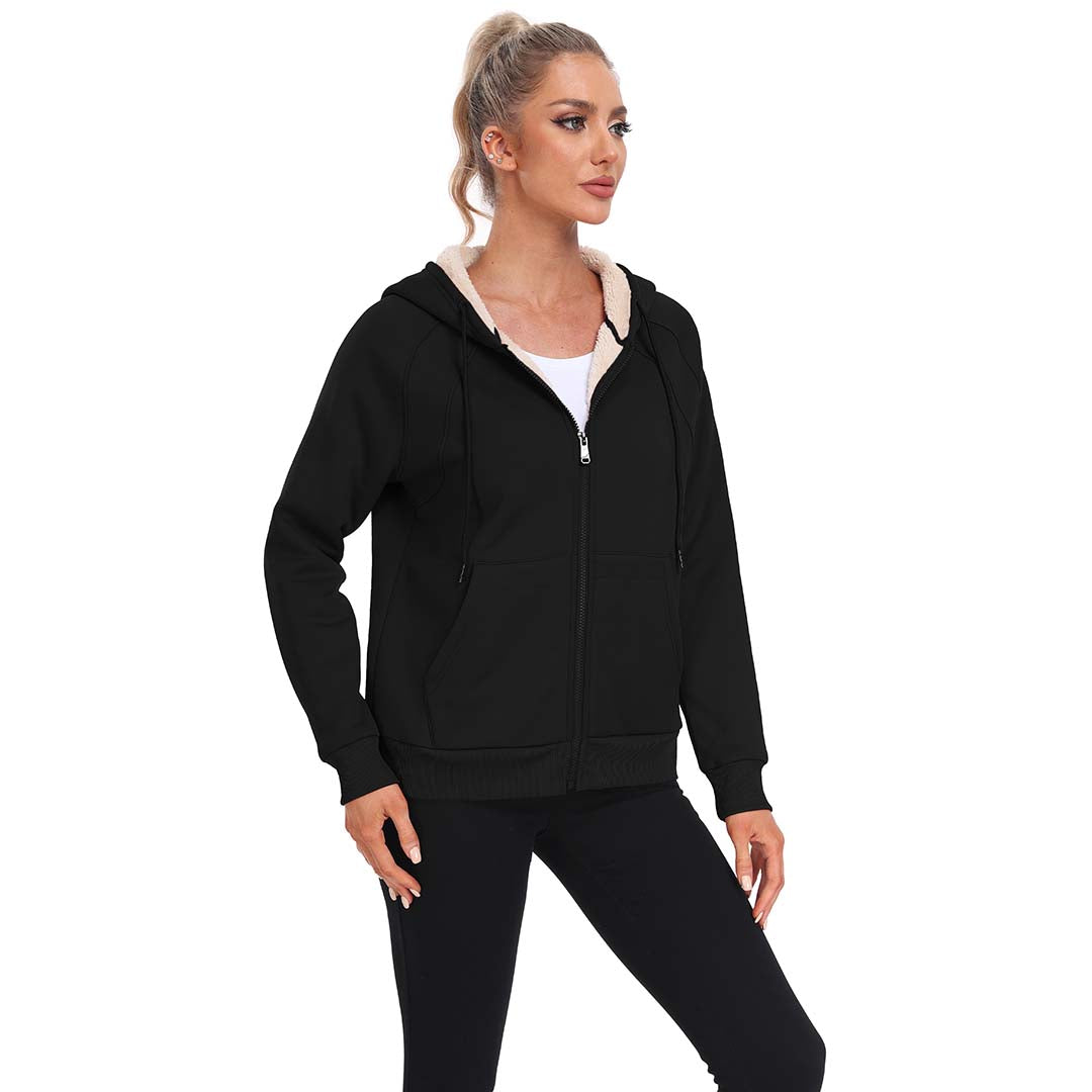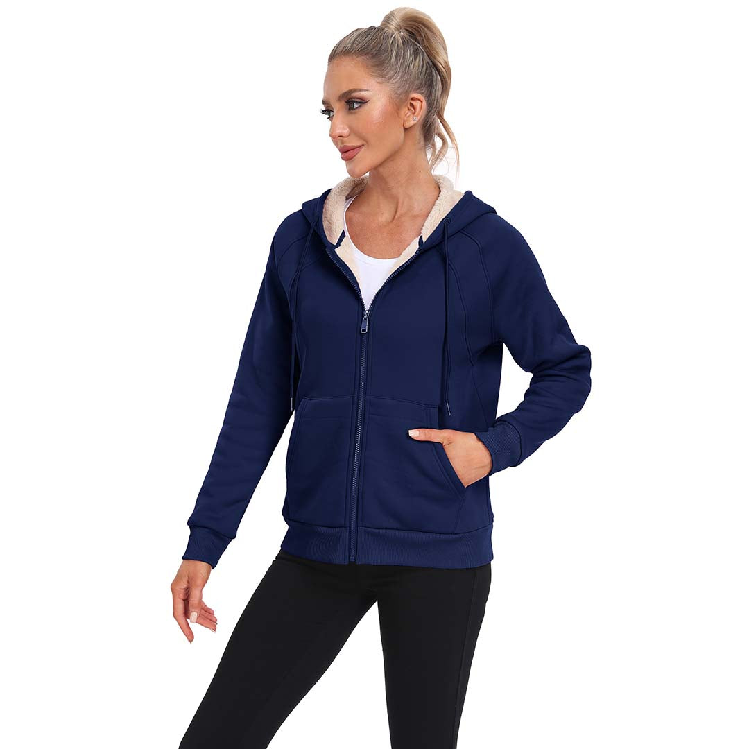Womens Fleece Hoodie Jackets Made from 100%Polyester, Sherpa Lined, soft and cozy so that you can be warm in cold weather, perfect for autumn, winter season.