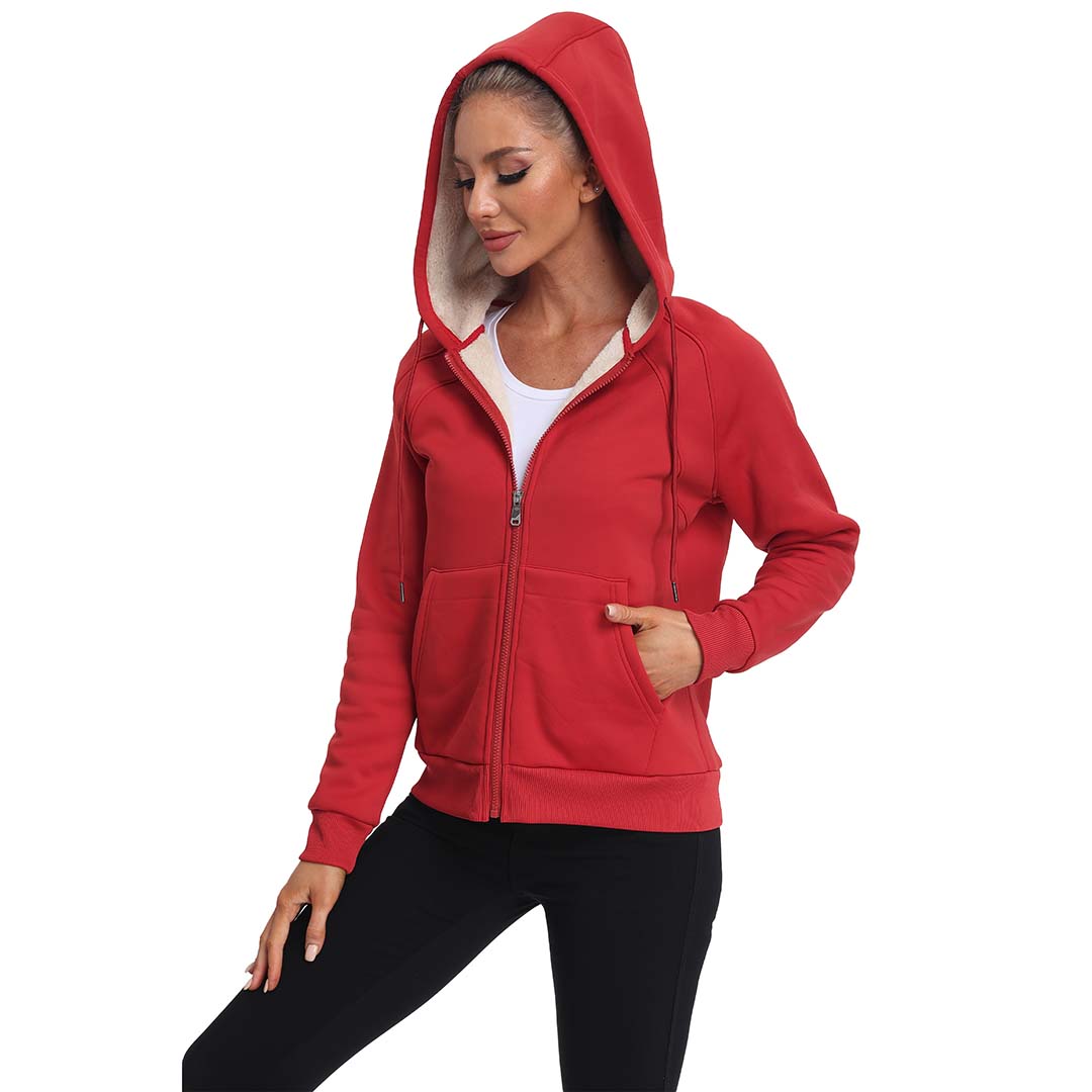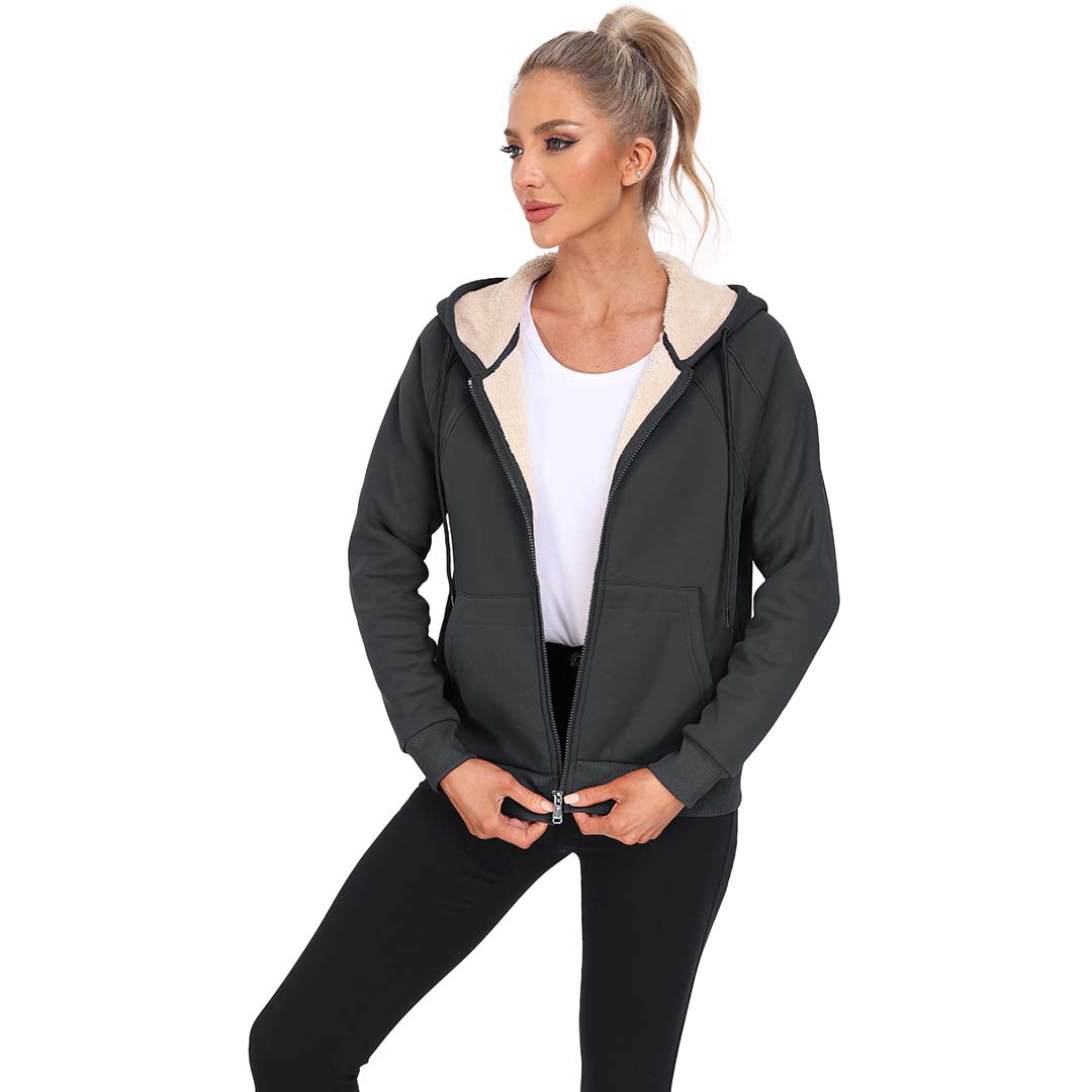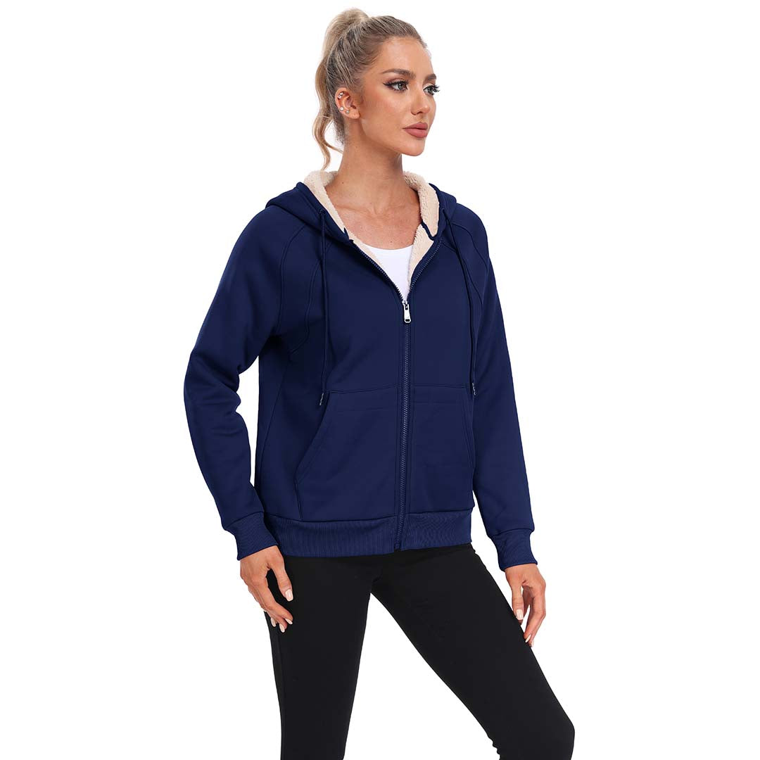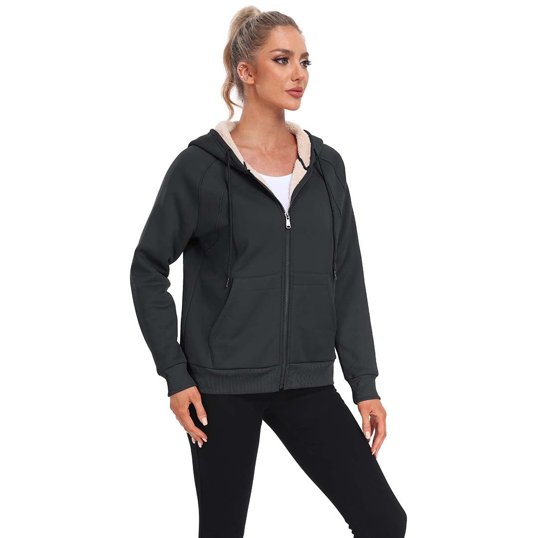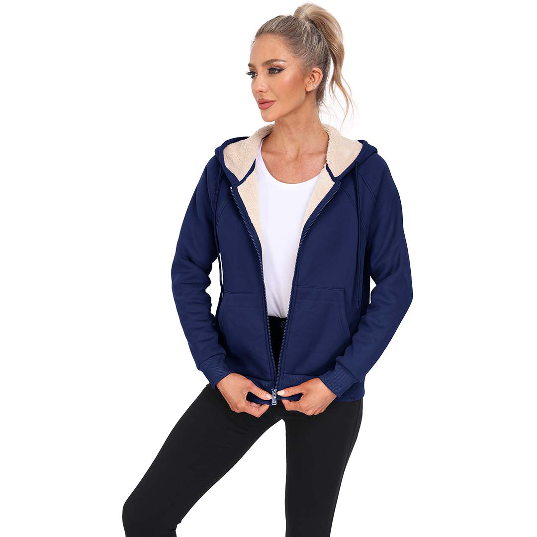 Womens Fleece Hoodie Jackets Made from 100%Polyester, Sherpa Lined, soft and cozy so that you can be warm in cold weather, perfect for autumn, winter season.