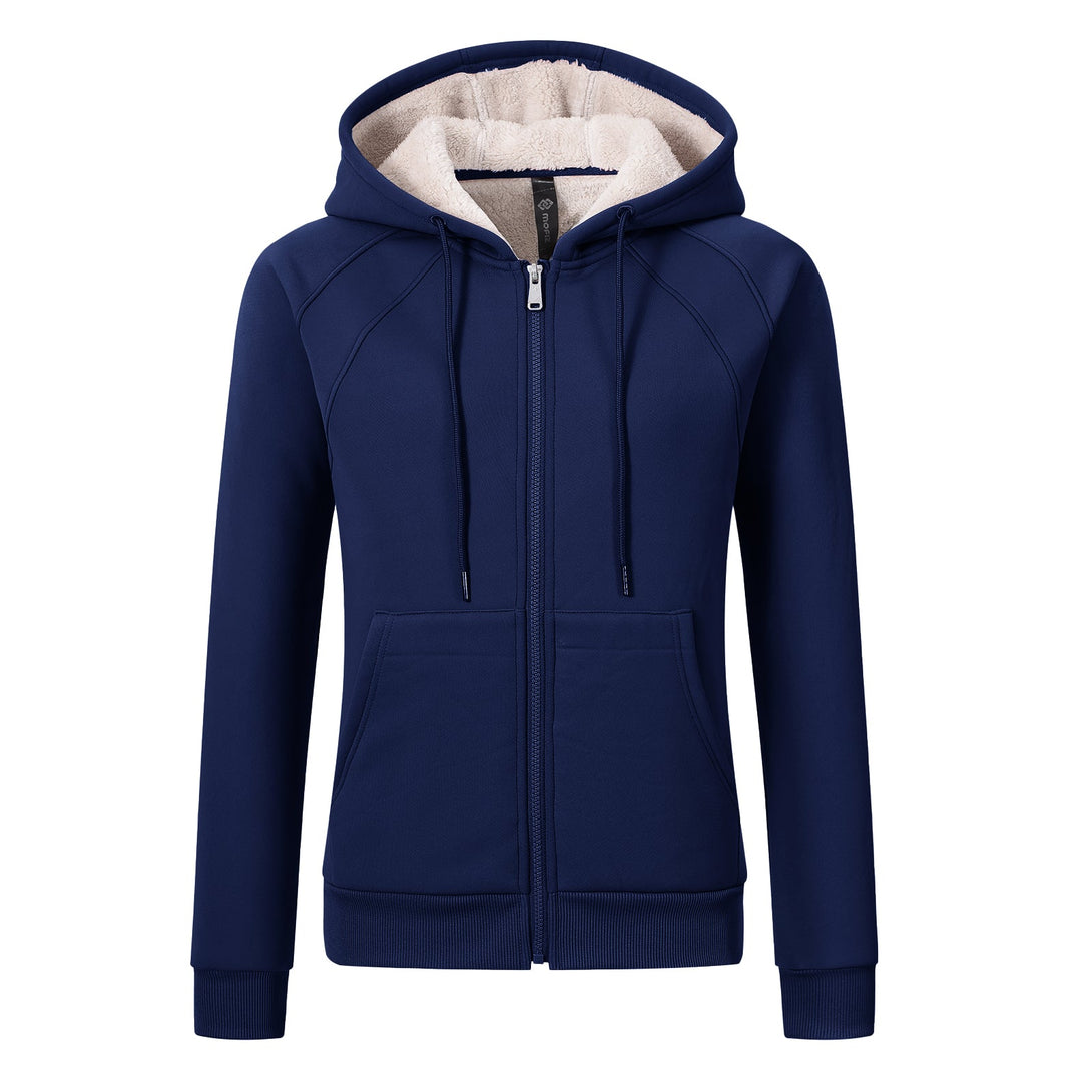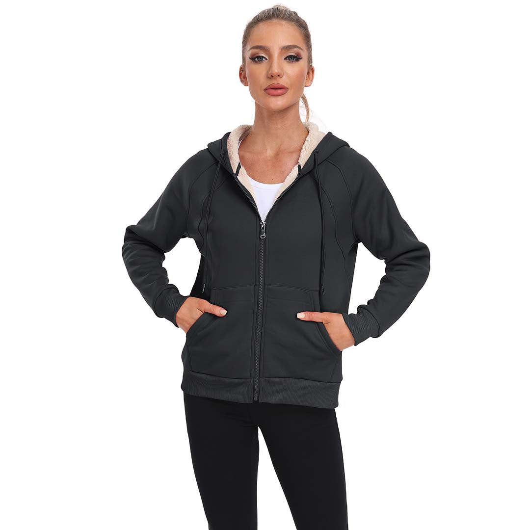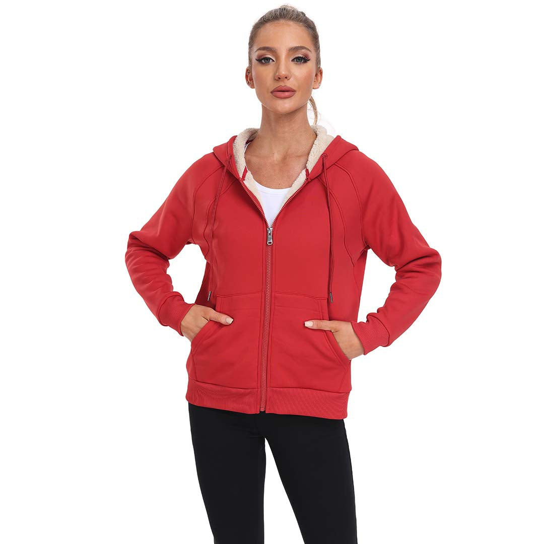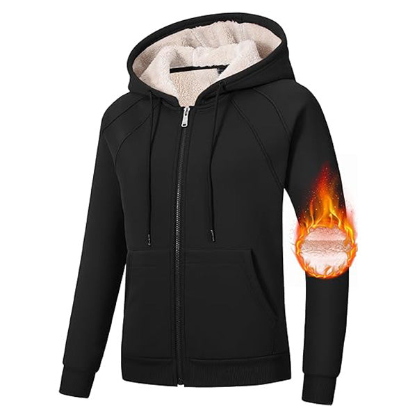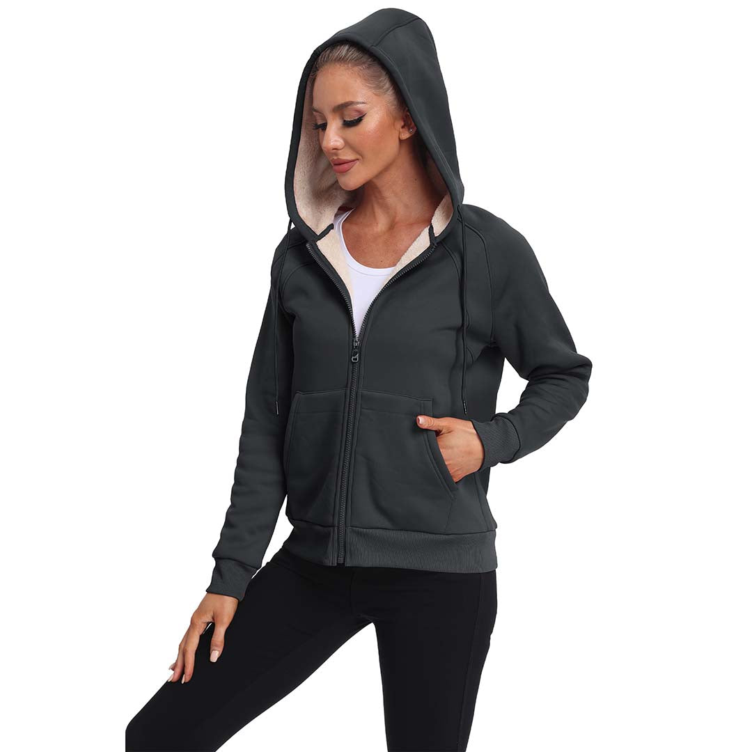 Womens Fleece Hoodie Jackets Made from 100%Polyester, Sherpa Lined, soft and cozy so that you can be warm in cold weather, perfect for autumn, winter season.