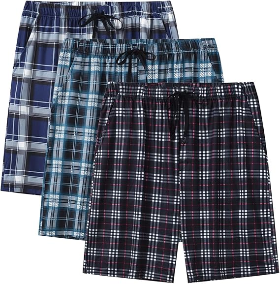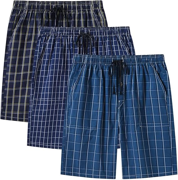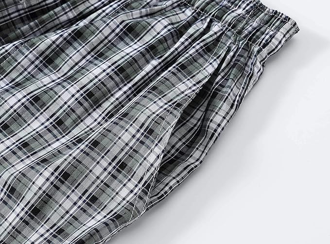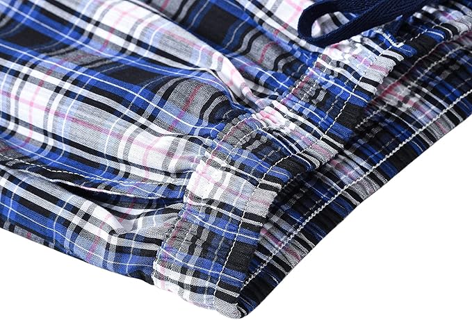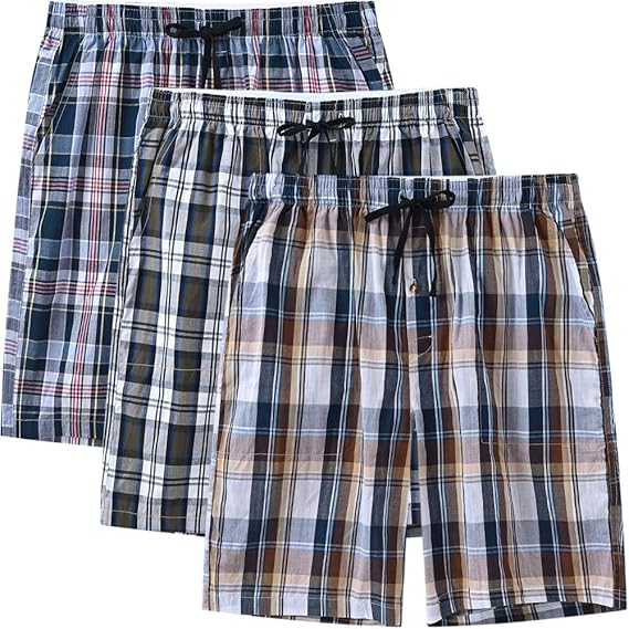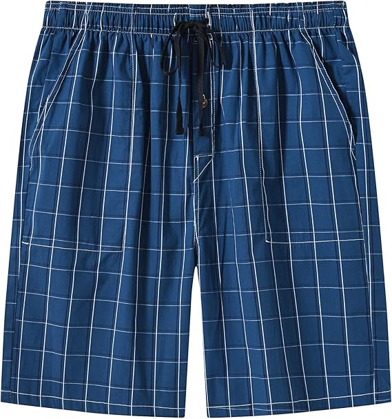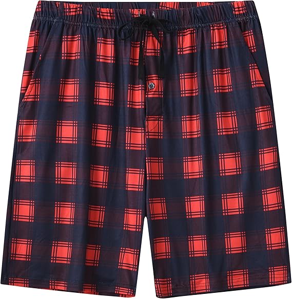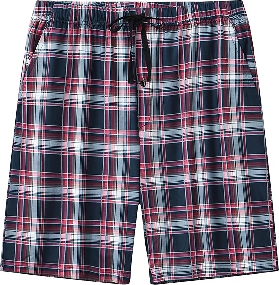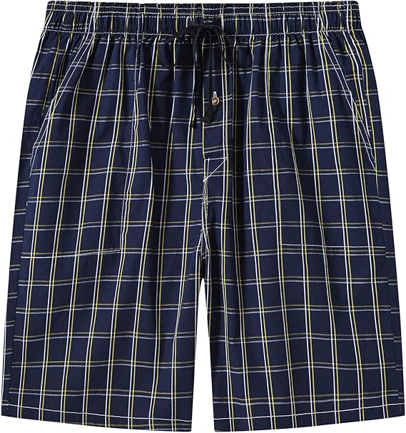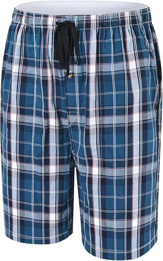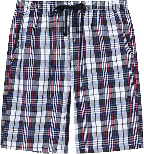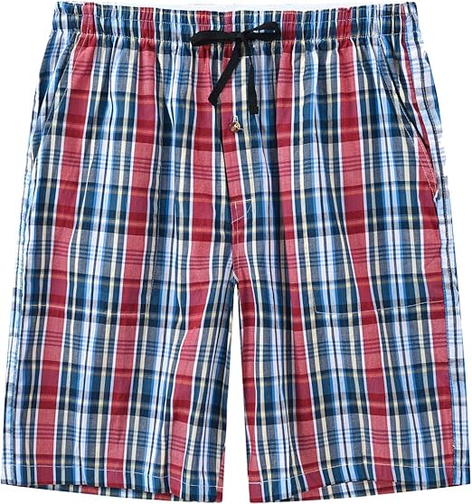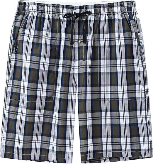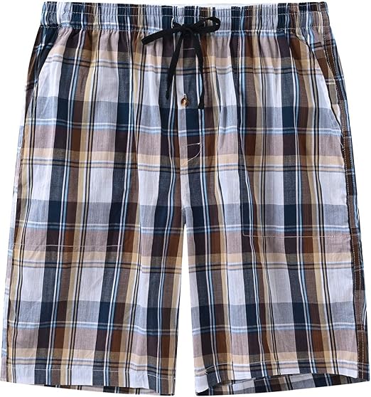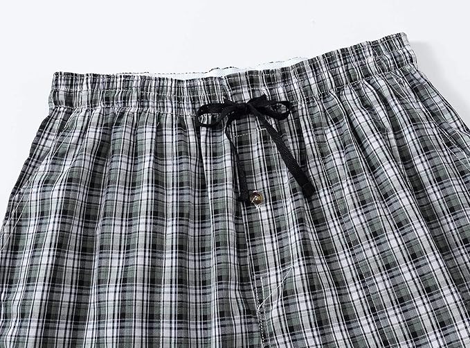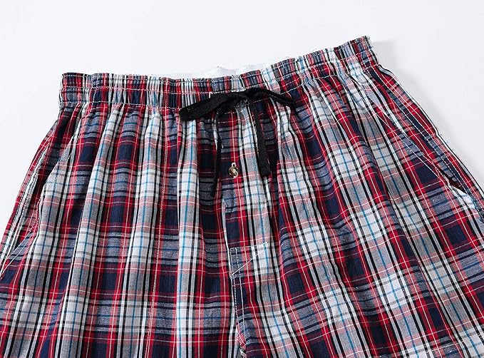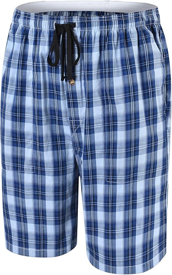 - Men's woven plaid sleep shorts comfort pajama lounge shorts for daily wear.