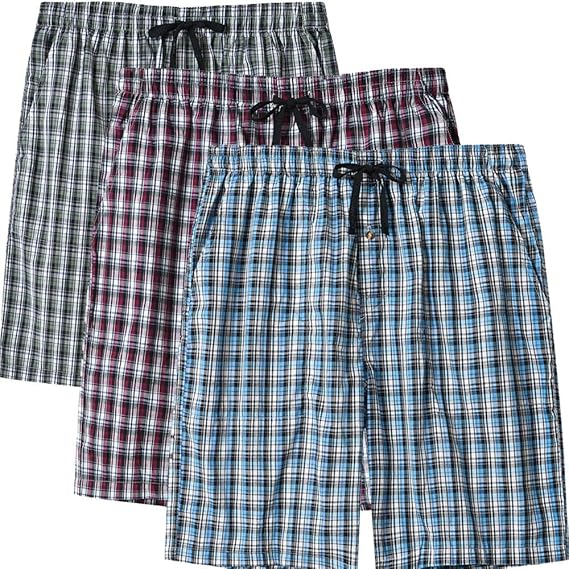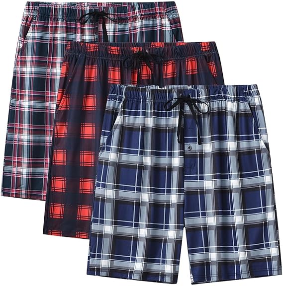 X'soft Men's Sleepwear Shorts Pajama Bottom Lounge Short Plaid Button Open Fly 3Pack